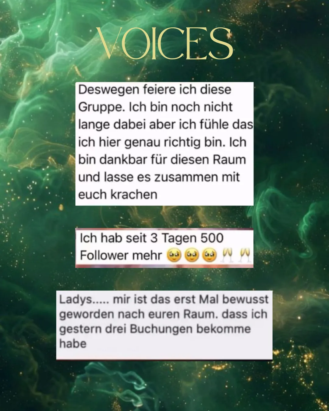 du einen massiven Shift willst – raus aus dem Kopf, rein in deine gelebte Größe, in Business, Beziehungen, Geldfluss und Selbstausdruck.