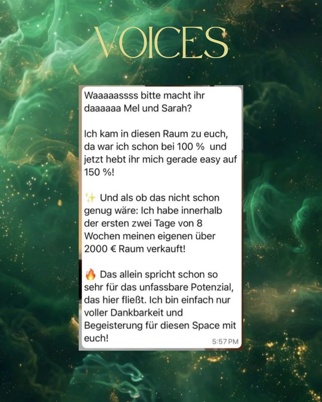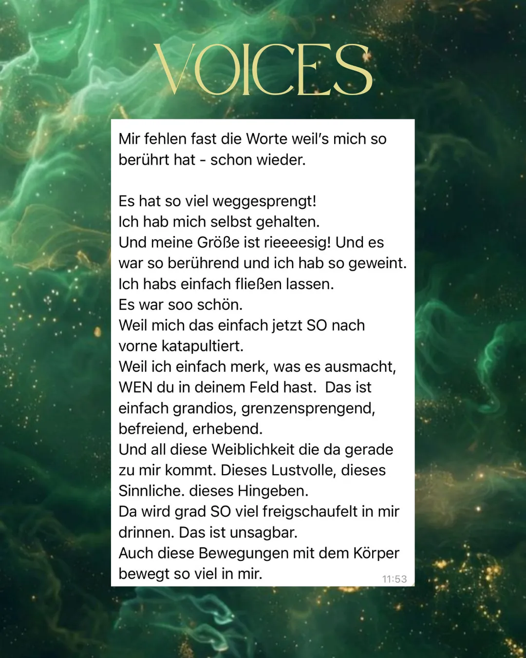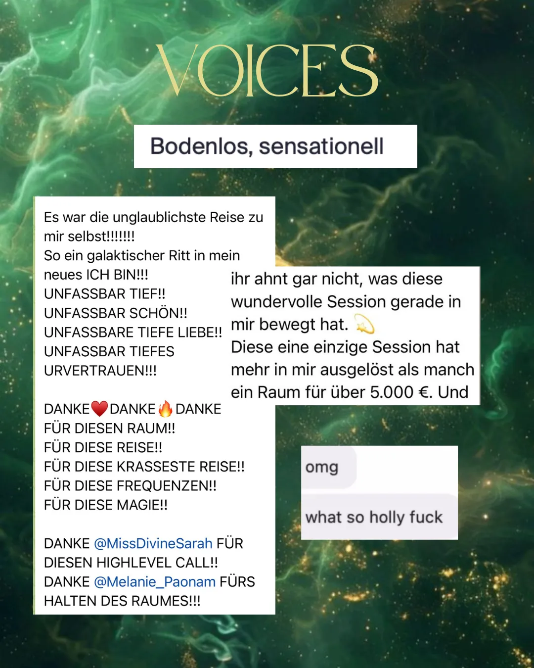 du einen massiven Shift willst – raus aus dem Kopf, rein in deine gelebte Größe, in Business, Beziehungen, Geldfluss und Selbst-Ausdruck.